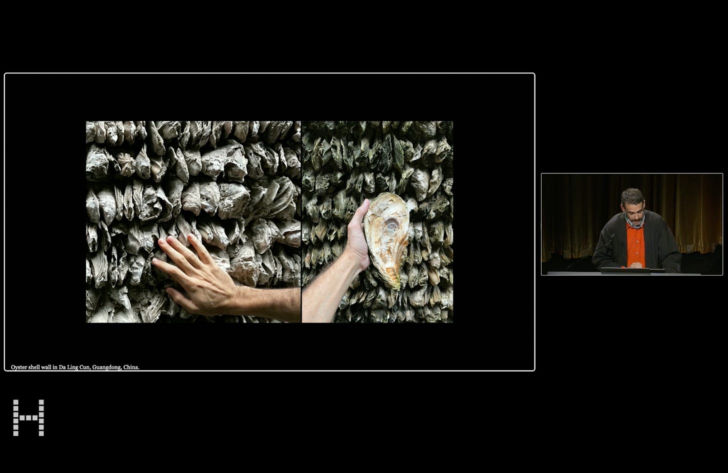 Last month, Daniel presented our lecture Becoming Shellfish; Architectures of Intertidal Cohabitation at Harvard GSD. The talk focuses on our ongoing work in Skye and its tidal zone, a liminal space that challenges the ecological, legal and financial thresholds of coastal areas. Following CLIMAVORE, a framework that investigates ways of metabolising climate breakdown, these littoral spaces are at the core of entanglements between risk and social security, profit margins and contamination struggles, geological processes and weather events; between what is used and what is refused. Thinking with waste seashells and beach-cast seaweeds allows us to expand the possibilities of caring for coastal ecologies while sensing and monitoring human actions affecting them. As awareness about the environmental footprint of construction and the ‘mitigation’ of its associated toxicities increases, transitions to other forms of building may connect to materials from intertidal origin that can also contribute to addressing the broken food chain. Seaweeds and bivalves have been key in human and nonhuman diets, and used as building substrate across geographies over millennia. Their role in providing nourishment and shelter has supported coastal dwellers to invent unique forms of collective usership through cultivation, harvest, sourcing, processing; and building techniques such as thatching, cladding, insulation, and plastering. Both an ingredient and a material, they can advance an architecture for the tidal commons.